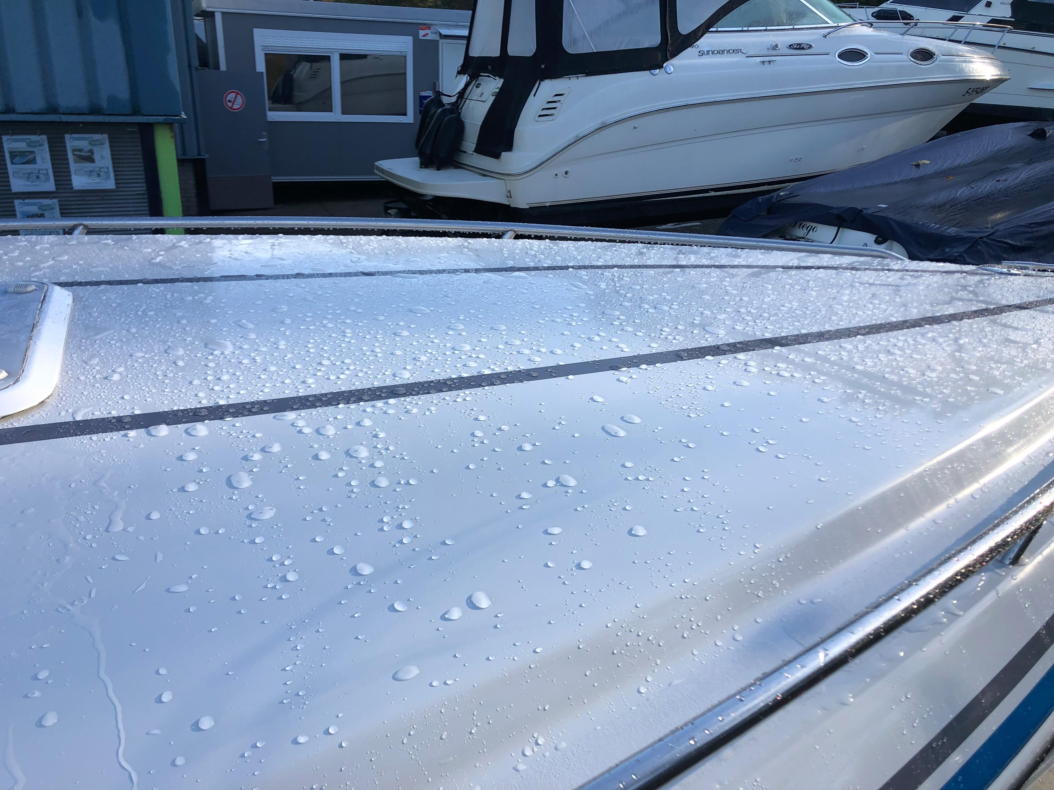 De buitenkant van de boot is rondom gepolijst en staat in de Gyeon Q2 Can Coat. Op de foto?s zijn de stickers en het registratie nummer nog niet geplakt. Deze worden nog gemaakt en geplakt.